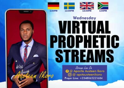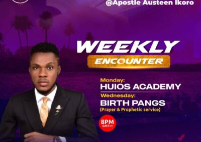 A prophetic training gathering focused on hearing God, spiritual discernment, and ministry activation. Holds every Saturday, 12 AM (GMT+1).
