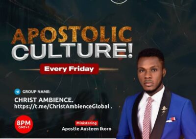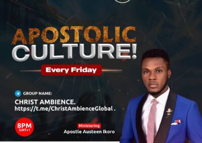 Christ Ambience Ministries is a prophetic and apostolic ministry committed to spiritual transformation, leadership development, and global kingdom impact.